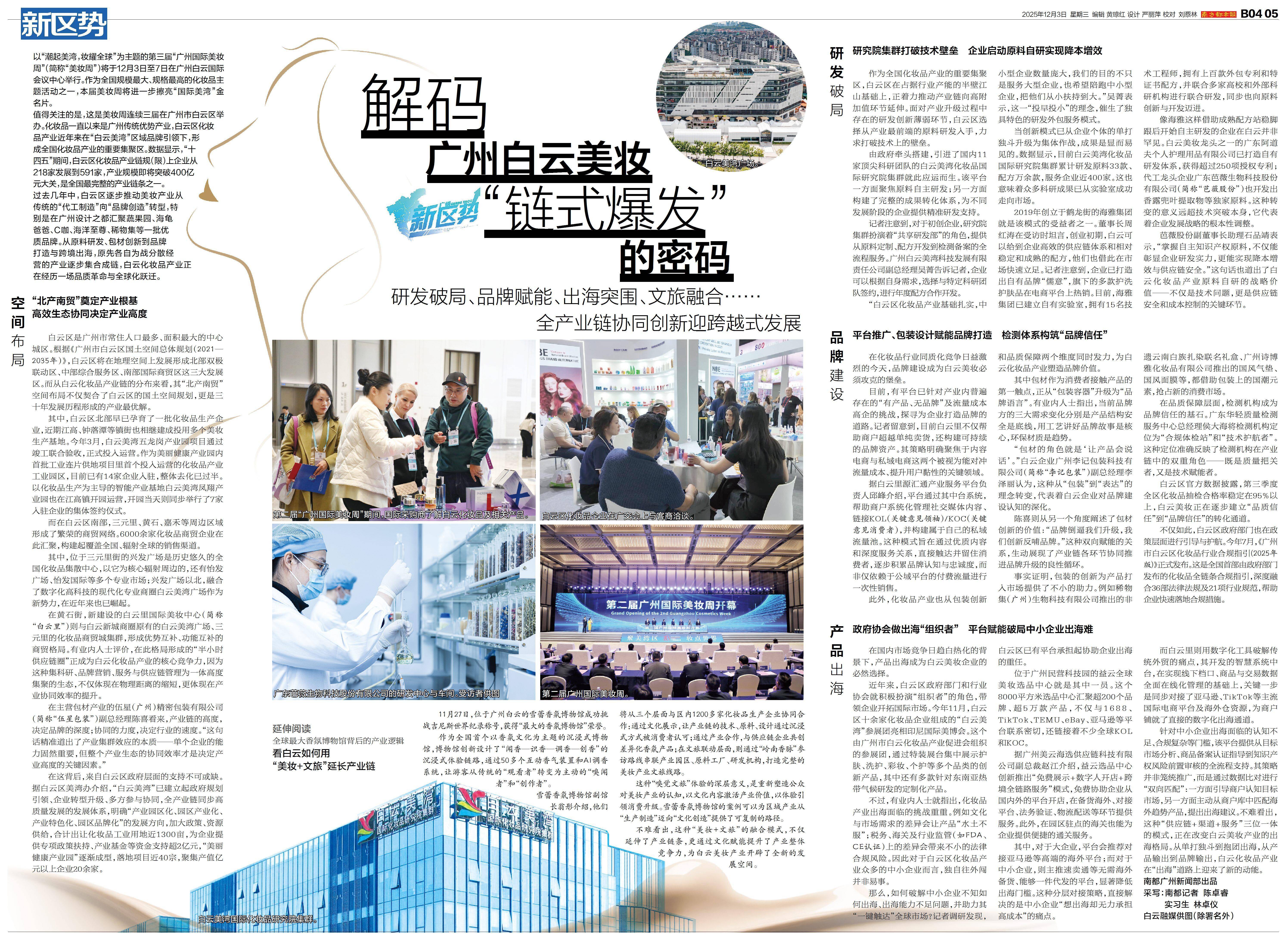 我也通过采访白云里国际美妆核心,切磋中小企业若何拿到流量这一品牌扶植中付出成本最高的要素之一,正在合作中打响出名度;包材企业的担任人更是以包材设想的内涵,道出这一看似冷门的财产正在链条上不成或缺的主要意义。