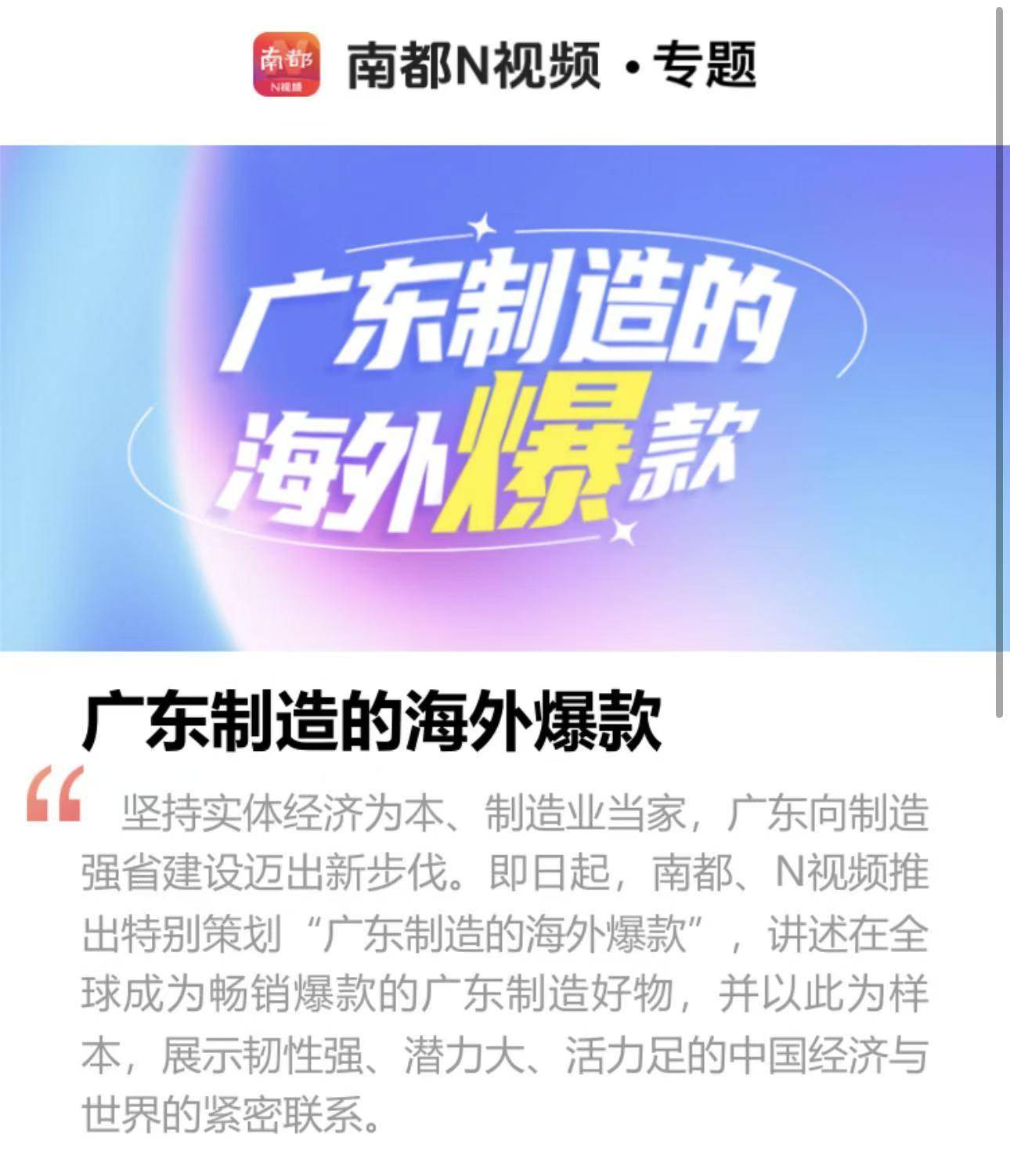 自2022年以来,我所正在的南都深度查询拜访部团队持续打制“广东IP名扬海外”系列报道,通过《关税冲击下的广围》《寻找广东经济活力面目面貌》《广东小镇的海外生意》《广东制制的海外爆款》等专题,系统记实了广货正在全球市场博得青睐的案例。