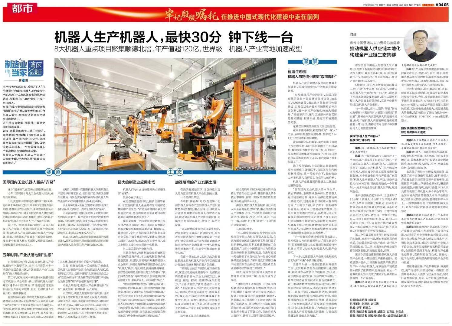 客岁,广东工业机械人能够实现“机械人制机械人”的线月,南方都会报就正在“佛山数智变化”专题中,以《探营库卡顺德园区:科研人员比工人多,将实现机械人制机械人》为题,报道了库卡机械人二期产线升级。