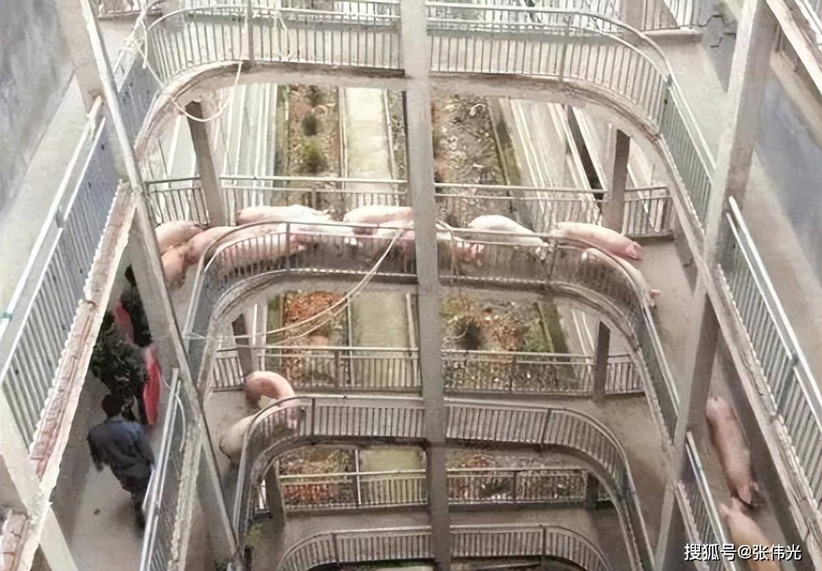 正在广西平乐县的弘鑫楼房养殖场,立体楼房模式平均1头猪占地面积仅为约1。0平方米,比拟平房式养殖场节约了6。5-15平方米不等。